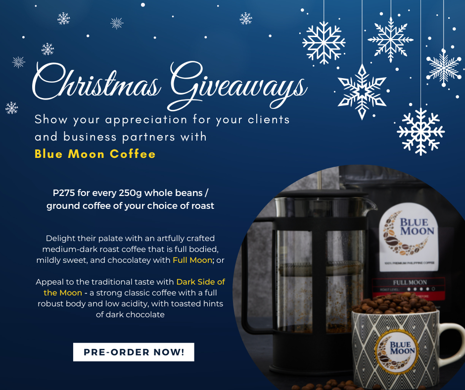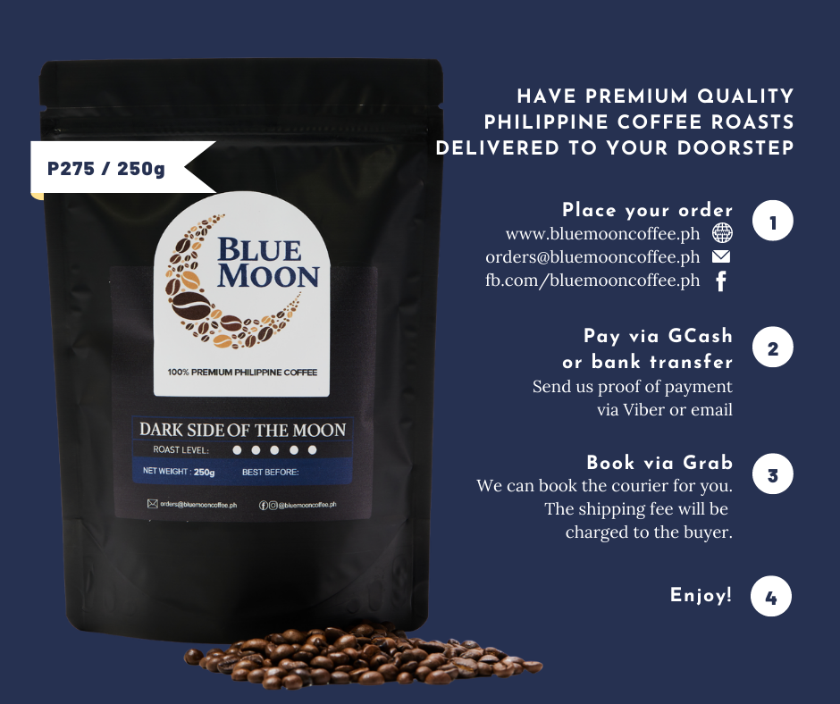 Blue Moon Coffee is Philippine coffee! Gathered from select sustainable coffee farms along the slopes of Bukidnon’s mountain ranges, blessed with sun and rain. We use over seven (7) kilos of fresh coffee berries to produce a kilo of our green coffee beans. This hand sorted coffee underwent an eight-stage process to bring to you one of the best coffees the Philippines has to offer.